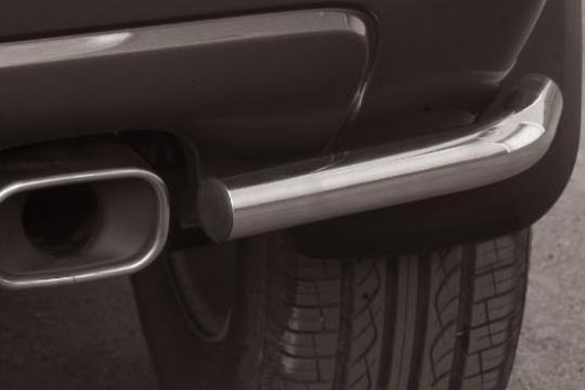 Защита заднего бампера для Kia Sportage – это защитные уголки на бампер из нержавеющей стали диаметром 42 мм.