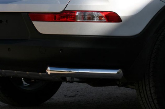 Защита заднего бампера для Kia Sportage – это защитные уголки на бампер из нержавеющей стали диаметром 60 мм.