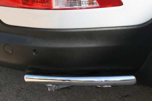 Защита заднего бампера для Kia Sportage – это защитные уголки на бампер из нержавеющей стали диаметром 42 мм.