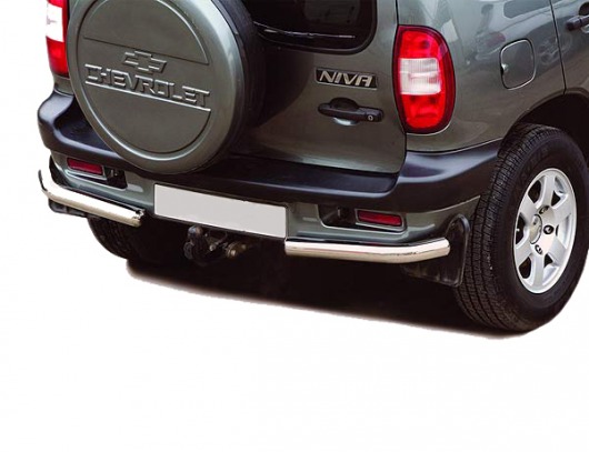 Защита заднего бампера для Chevrolet Niva – это защитные уголки на бампер из нержавеющей стали диаметром 60 мм.