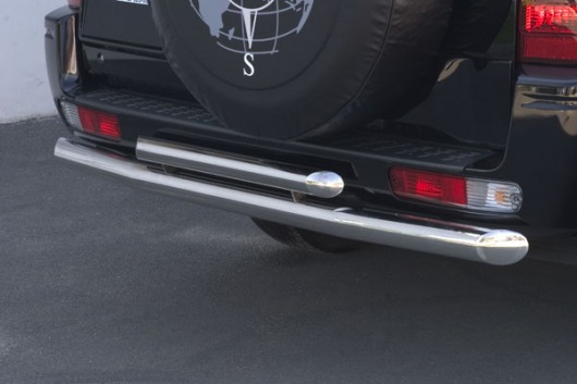 Защита заднего бампера для Mitsubishi Pajero III – это двойная труба на бампер из нержавеющей стали диаметром 76/60 мм.