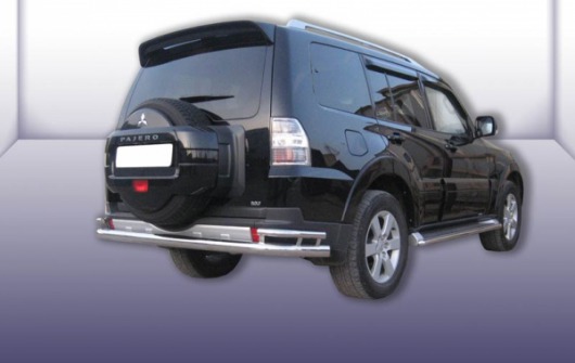 Защита заднего бампера для Mitsubishi Pajero IV – это двойная труба на бампер из нержавеющей стали диаметром 76/76 мм.