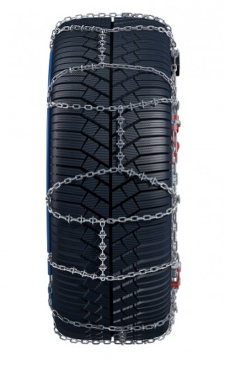 • Цепь на шины имеет ассиметричный ромбовидный рисунок. Она дополнена усилителями дробления льда(небольшими пластинками на звеньях). Благодаря этому дробление льда и снега становится более эффективным, а значит, улучшается сцепление с дорогой. Размер звена — 10 мм.