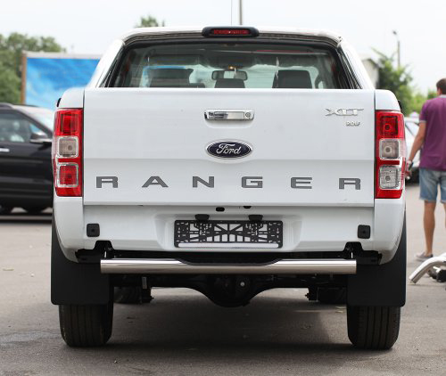 Защита заднего бампера труба с проступью предназначена для автомобилей Ford Ranger от 2013 г.в. Вам не придется подгонять защиту под размеры бампера вашего авто. И с монтажом проблем не возникнет: установка защиты заднего бампера производится в штатные отверстия, а значит, необходимость сверлить кузов отпадает.