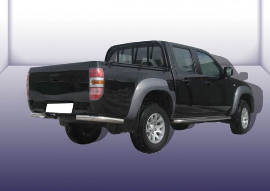 Защита заднего бампера уголки предназначена для автомобилей Ford Ranger от 2013 г.в. Вам не придется подгонять защиту под размеры бампера вашего авто. И с монтажом проблем не возникнет: установка защиты заднего бампера производится в штатные отверстия, а значит, необходимость сверлить кузов отпадает.