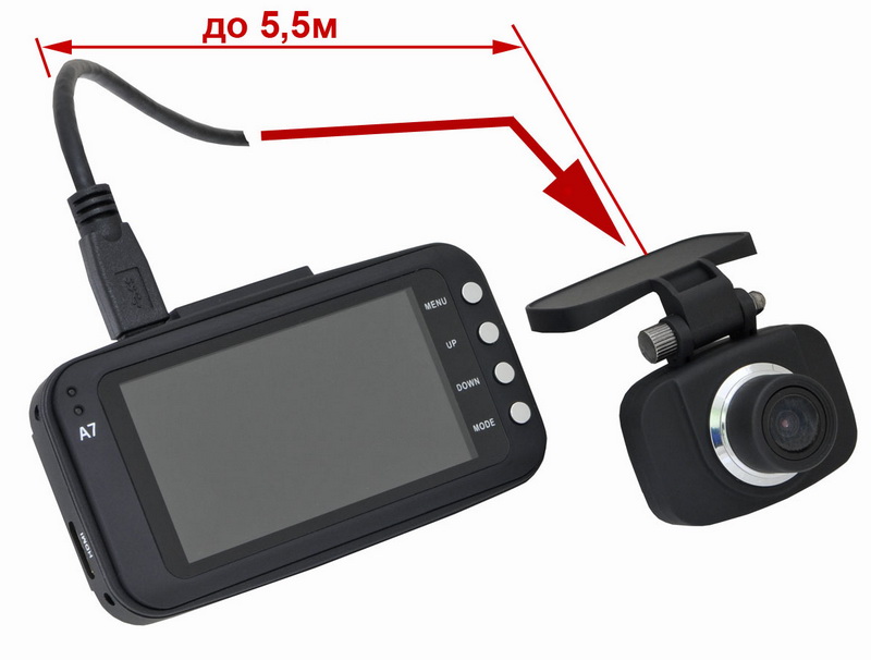 • Дополнительная камера снабжена проводом длиной в 5,5 метров, то есть её можно выносить и устанавливать в нужное вам место.