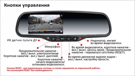Экран, который вынесен за пределы салона - вот одно из самых важных достоинств такого авторегистратора. При том, что прибор имеет очень большую диагональ 4.3 дюйма, он совсем не мешает вам обозревать дорогу, по которой вы едете, потому что он находится на месте штатного зеркала заднего вида. А это означает, что вы сможете всегда просмотреть сделанные записи, как только это вам понадобится. Например, когда вам придётся доказывать инспектору, что в том, какая ситуация сложилась на дороге, вы не виноваты и не имеете к этому отношения, а следовательно, не должны и нести ответственность за чужие правонарушения.