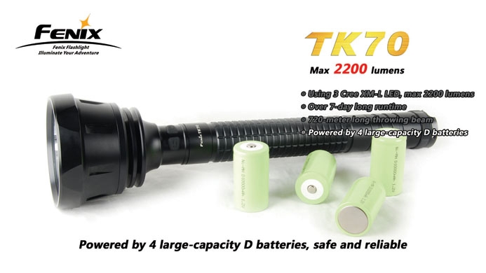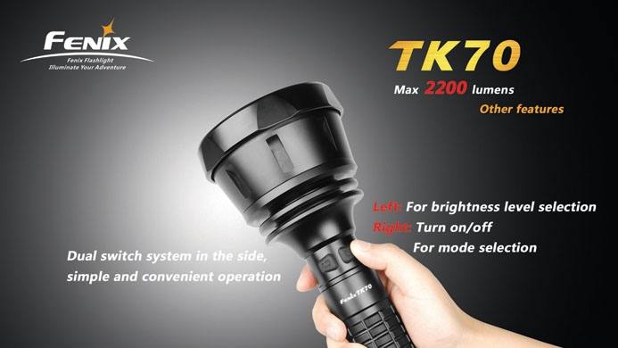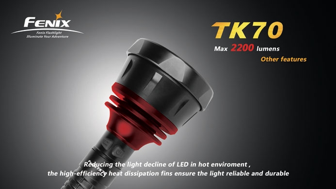 Поисковый фонарь Fenix TK70 — вторая по мощности модель в линейке. Три светодиода обеспечивают ему фантастическую яркость в 2200 люмен. Благодаря этому, а также высокой надёжности это идеальная модель для поисковых служб, экспедиций и береговой охраны — от ярчайшего луча FenixTK70 не скроется ничто.