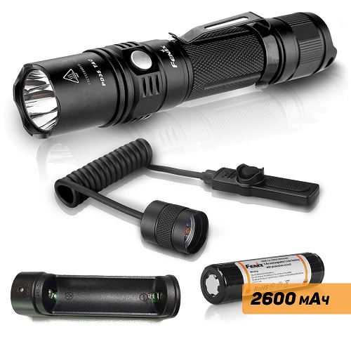 Fenix PD35 TAC работает и от других качественных литий-ионных аккумуляторов 18650, а также литиевых батареек типоразмера CR123A. Время работы с этими элементами питания будет зависеть от их технических характеристик.