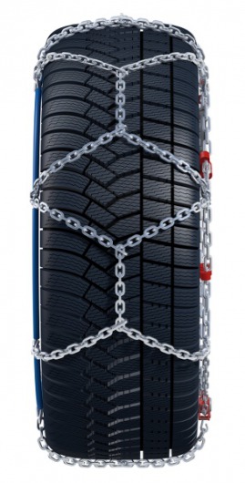 Цепь на шины имеет ассиметричный ромбовидный рисунок. Благодаря такому расположению звеньев дробление льда и снега становится более эффективным, а значит, улучшается сцепление с дорогой. Размер звена — 16 мм.