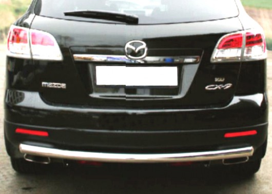 Труба на задний бампер Mazda CX-9 защищает задний бампер автомобиля от различных механических повреждений при столкновениях на дороге и неудачных парковках. А кроме этого, защита заднего бампера для Мазда СХ-9 — это дополнительная деталь тюнинга.