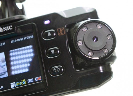 Новая модель автомобильного видеорегистратора Cansonic FDV-707 GPS оснащена сразу двумя камерами, которые удобно расположены по обе стороны корпуса. Панорамная камера имеет угол обзора 140 градусов, а это — возможность съемки до 4-х полос движения! Камера-"бинокль" с улучшенной линзой позволяет четко рассмотреть номерные знаки на расстоянии до тридцати метров.