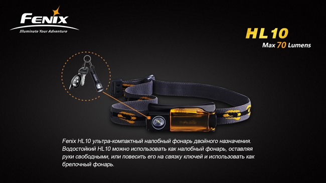 Универсальный фонарь Fenix HL10 – одна из самых интересных моделей в линейке. Уникальность фонарика заключается в том, что он может использоваться и как налобный фонарь, и как фонарь-брелок! Модель очень компактна и работает всего от одного аккумулятора ААА, но при этом выдаёт отличную яркость до 70 люмен! Не будучи рекордсменом по дальности светового луча, фонарь Fenix HL10 благодаря своим достоинствам станет надёжным помощником в самых разных ситуациях.