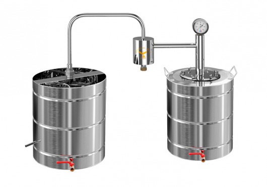 С помощью этого самогонного аппарата большой вместимости с сухопарником и баком на 110 литров вы легко сможете приготовить качественные спиртные напитки в любых условиях, например, на даче или в деревне. Этот аппарат не обязательно подключать к водопроводу: для охлаждения змеевика в нем предусмотрен дополнительный резервуар, который заполняется холодной водой. При этом вам не придется осваивать сложные технологии самогоноварения: достаточно просто залить в бак брагу и поставить аппарат на плиту (подойдет как газовая, так и электрическая плита) или на костер (почему бы и нет?).