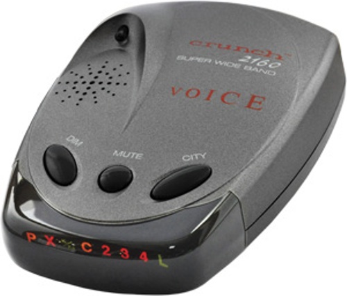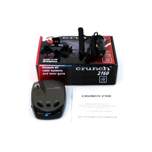 Если антирадар Crunch 2160 обнаруживает какой-либо сигнал из заданных диапазонов, то он оповещает об этом при помощи голосового сообщения и звукового сигнала, которые сопровождаются свечением определенного светодиодного индикатора. В целом, по результатам независимых тестов, этот антирадар показал весьма уверенное обнаружение сигналов в диапазоне частот X, K и Ka.