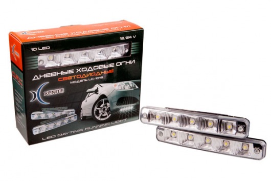 Дневные ходовые огни Xenite DRL-1019 выполнены из ударопрочного корпуса и содержат в каждой фаре по 5 сверхярких светодиодов. Цветовая температура 5000 К, суммарная мощность светодиодов 7,68 Вт.