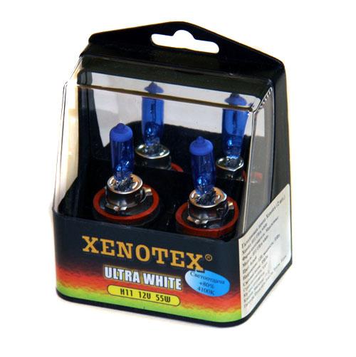 Качественная галогеновая лампа Xenotex H11 Ultra white с увеличенной на 80% светоотдачей отличается своей стабильной работой и имеет синий оттенок света. Лампа позволяет отлично видеть дорогу даже в самую плохую погоду.