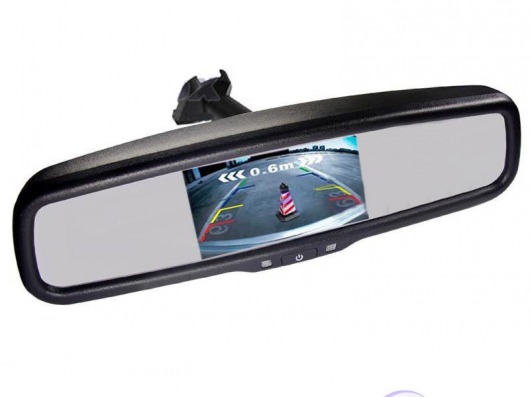 Салонное зеркало снабжено большим экраном, который автоматически включается, если вы даёте задний ход. Если подключить к зеркалу с монитором камеру заднего вида, вы увидите на экране всё, что она снимает.
