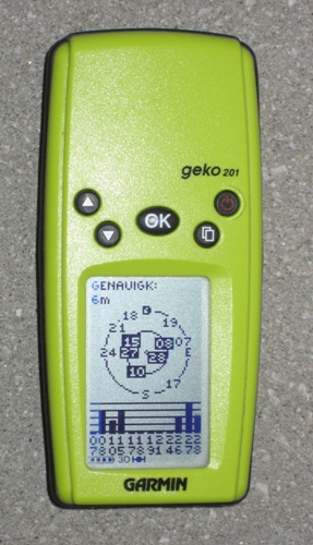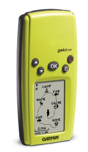 Портативный GPS навигатор Garmin Geko 201 имеет специальный разъем, через который осуществляется подключение к устройству внешнего источника питания, а так же кабеля для синхронизации с компьютером. Встроенная память прибора позволяет хранить до 20 маршрутов и 10 траекторий. Данный навигатор ориентирован в основном на рыболовов и охотников, но может использоваться как туристами, так и просто любителями активного отдыха на природе.