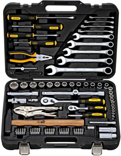 BERGER BG078-1214 — это набор инструментов для автомобиля, который содержит в себе 78 предметов, просто необходимые любому автолюбителю: трещотку, биты, торцевые и свечные головки, комбинированные ключи и многое другое. Все инструменты находятся в удобном и стильном кейсе, благодаря чему вы можете возить данный набор в чемодане в своем автомобиле или же просто положить в гараже. Таким образом, вы всегда сможете устранить мелкие неполадки в своем авто за считанные секунды, не обращаясь на СТО.