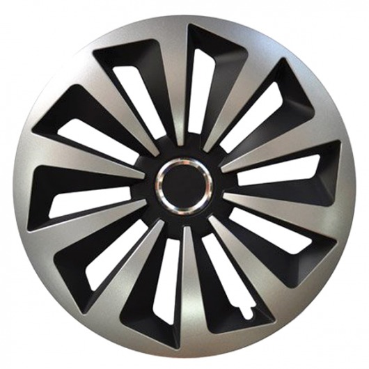 Диаметр автомобильных колпаков на колеса — 15 дюймов. Цвет: серебристо-черный.