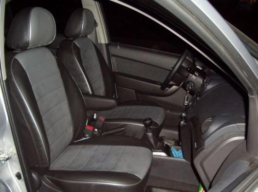 Вопросы и отзывы про Чехлы автомобильные для Chevrolet Aveo I, седан/хэтчбек 03-12 г.в. (черно-темно-серые, экокожа)