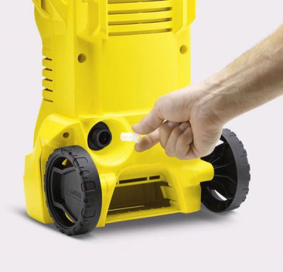 • Автомобильная минимойка Karcher K 2 Car оснащена шлангом с фильтром для моющего средства. Так, средство всасывается из бака и образует стойкую пену. Благодаря этому процесс мойки происходит максимально качественно и комфортно.