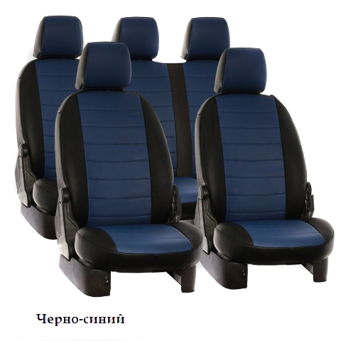Вопросы и отзывы про Чехлы автомобильные для Fiat Doblo, каблук, 5 мест (черно-синие, экокожа)