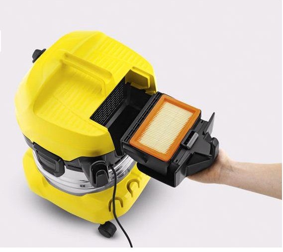 Хозяйственный пылесос вовремя предупреждает вас, что нужно очистить фильтр. Конструкция позволяет быстро и удобно извлекать фильтр: достаточно разблокировать кассету и вытащить ее из головки пылесоса. При этом вы не испачкаетесь.