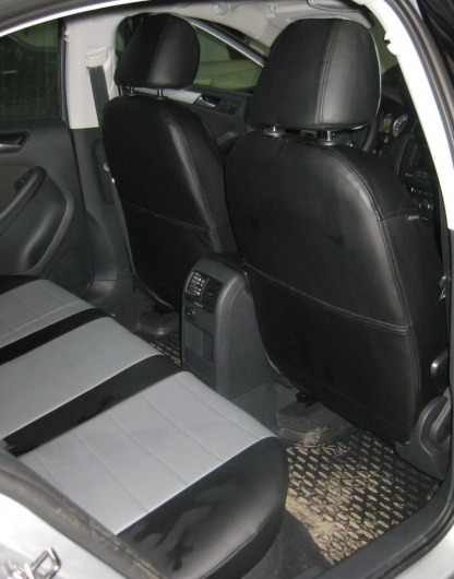 Вопросы и отзывы про Чехлы автомобильные для Volkswagen Passat B5, седан, 96-05 г.в. (черно-светло-серые, экокожа)