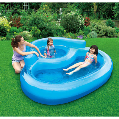 Детский бассейн Deluxe Spa предназначен для детей от 6 лет. Он имеет прозрачные стенки и резделительный бортик, который делит бассейн на 2 части. Одна часть — поглубже — в ней можно даже окунаться с головой. Вторая часть — продолговатой формы — здесь можно лежать, сидеть и играть. Благодаря такой форме в надувном бассейне смогут находиться одновременно 2 ребенка, не мешая друг другу.