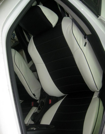 Вопросы и отзывы про Чехлы автомобильные для Nissan Note (бело-черные, экокожа)