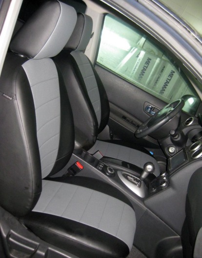 Вопросы и отзывы про Чехлы автомобильные для Nissan Qashqai, 5 мест (черно-светло-серые, экокожа)