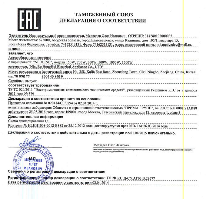 Преобразователь напряжения Neoline 300W преобразует 12В постоянного тока в 220В переменного, используя энергию аккумулятора или генератора. Причем это не просто автомобильный инвертор, это 2 устройства в 1! Алюминиевый инвертор напряжения работает как преобразователь тока и зарядное устройство для аккумуляторов. Подходит для автомобилей с напряжением бортовой сети 12В. Подключая Neoline 300W к прикуривателю, вы получаете в машине обычную домашнюю розетку!