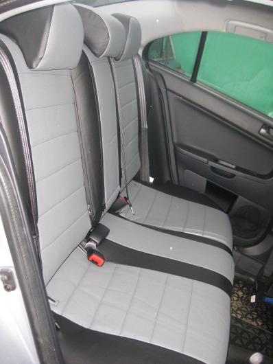 Вопросы и отзывы про Чехлы автомобильные для Mitsubishi Lancer X, седан, от 12 г.в. (черно-светло-серые, экокожа)