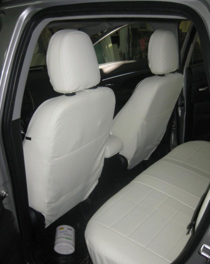 Вопросы и отзывы про Чехлы автомобильные для Mitsubishi Lancer X, седан, 2 л., от 07 г.в. (белые, экокожа)