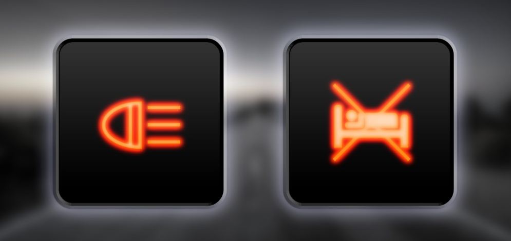 • Функции контроля. Функция контроля включения фар напоминает вам о том, что нужно включить фары при плохой освещенности. Функция антисон предупреждает о том, что нужно отдохнуть. Это удобно, если вы часто находитесь в пути. В 1-м и 2-м случаях выводятся иконки предупреждения.