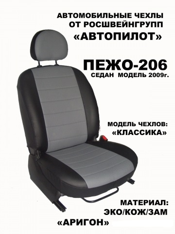 Вопросы и отзывы про Чехлы автомобильные для Peugeot 206, седан (черно-светло-серые, экокожа)