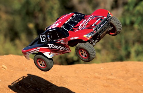 Радиоуправляемый внедорожник Traxxas Slash (TQ) - TRX58034 имеет задний привод. Машина на пульте управления оснащена мощным  электродвигателем Тraxxas Titan 550 12T, регулятором оборотов Traxxas XL-5 и емким аккумулятором NI-MH 8.4v 3000mAh. Это позволяет авто разогнаться до 50 км/ч. Кроме того, дизайн кузова радиоуправляемого грузовика  в точности повторяет оформление реальных автомобилей, участвующих в гонках.