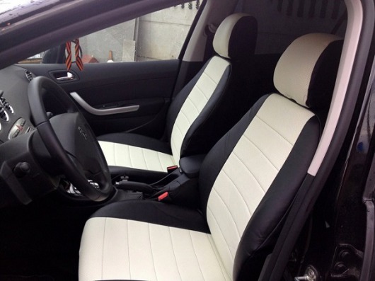 Вопросы и отзывы про Чехлы автомобильные для Peugeot 408 (черно-белые, экокожа)