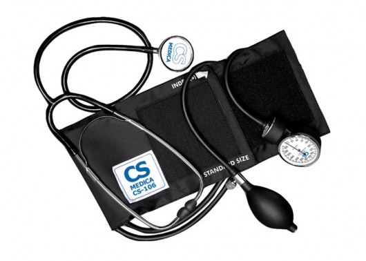 Наручный тонометр CS Medica CS-106 — прибор для измерения артериального давления, который подойдет для личного использования. Это модель классического типа с манометром и грушей-нагнетателем. Металлический стетоскоп в комплекте.