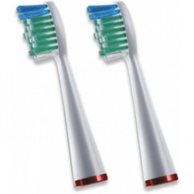 Стандартные насадки (2SRB-2W) для зубной щетки Waterpik SR-3000 Sensonic Professional Plus состоят из закругленных на конце щетинок, которые не царапают эмаль, бережно и тщательно удаляют налет. Насадки не только очищают налет, но и удаляют бактерии из труднодоступных мест за счет удлиненных щетинок.