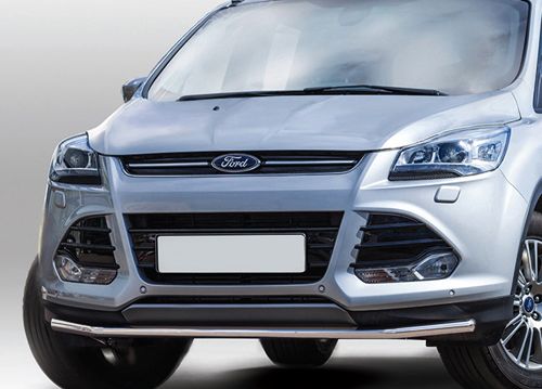 Защита переднего бампера труба предназначена для автомобилей Ford Edge от 2014 г.в. Вам не придется подгонять защиту под размеры бампера вашего авто. И с монтажом проблем не возникнет: установка защиты переднего бампера производится в штатные отверстия, а значит, необходимость сверлить кузов отпадает.