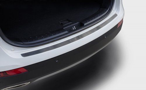 Наружная накладка без логотипа на порог багажника предназначена для автомобилей Hyundai Grand Santa Fe от 2014 г.в. Вам не придется подгонять накладку под размеры наружного порога вашего авто. И с монтажом проблем не возникнет: установка накладки на порог багажника производится на штатные места с помощью скотча 3М.