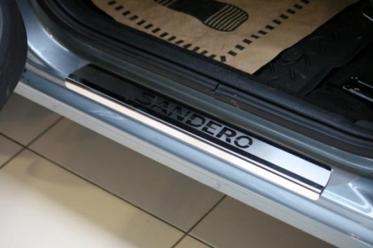 Накладки на боковые пороги Рено Сандеро изготовлены из полированной нержавеющей стали. Она обеспечивает сохранность накладок от коррозии на весь период эксплуатации.