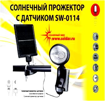 Солнечный светодиодный светильник SW-0114 широко применяется для подсветки гаражей, складских помещений и уличных территорий. Оснащен датчиком движения, что позволяет сэкономить энергию светильника. Обладает мягким белым светом, который не раздражает зрения и очень приятен. Кроме того, влагозащищенный дизайн светильника делает его эксплуатацию возможной и в случае дождя.