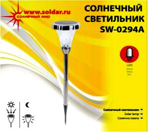 Солнечный светодиодный светильник SW-0294А - верный выбор, если Вы ищите способ обеспечить свой участок ярким, красивым освещением, но при этом не хотите тратить огромные суммы на электроэнергию. Светильник со встроенной солнечной панелью - это абсолютное энергосбережение и стильный свет для Вашего дворика. Солнечный светодиодный светильник SW-0294А имеет очень удобную форму: стержень, на котором он закреплен, можно просто воткнуть в землю в любом удобном для Вас месте.