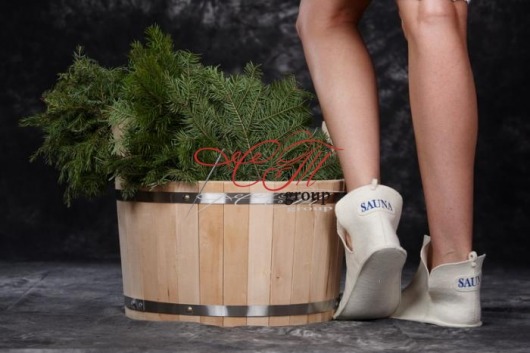 Банные тапочки для женщин декорированы вышивкой "Sauna", поэтому станут еще и оригинальным аксессуаром для настоящих модниц.