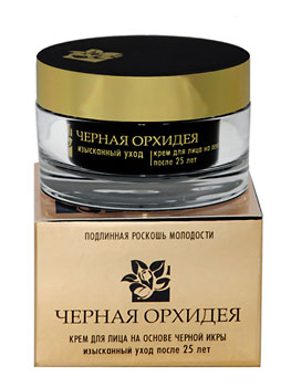 Черная икра — драгоценный деликатес, который содержит самые редкие и нужные питательные элементы, отвечающие за формирование и развитие жизненной структуры клеток. Активная формула на основе черной икры способна восстанавливать угасающие или замедленные вследствие возрастных изменений обменные процессы в коже и воспроизводить естественный процесс регенерации и омоложения. Настоящий источник молодости, черная икра стимулирует синтез натуральных структурных протеинов, которые отвечают за формирование молодых здоровых клеток, оживляет кожу на молекулярном уровне, устраняя видимые признаки старения. Кожа не просто выглядит здоровой и посвежевшей, она наполняется внутренней энергией и чувствует себя значительно моложе. Помимо немедленно результата и заметного улучшения состояния кожи, косметика на черной икре оказывает непревзойденное омолаживающее воздействие и обеспечивает долговременный устойчивый эффект. Крем для лица "Черная орхидея" — эффективный способ поставить надежный барьер возрастным изменениям кожи и предотвратить появление первых преждевременных морщинок. Предназначенный для женщин старше 25 лет, крем поддерживает обменные процессы в коже, естественным путем препятствуя ее старению; выявляет ослабленные участки кожи, где наиболее вероятно появление морщинок и замедляет их формирование; интенсивно увлажняет кожу и устраняет причины появления и закрепления мимических морщин, поддерживает оптимальный уровень увлажненности кожи; выравнивает микрорельеф кожи, улучшает ее текстуру; нейтрализует воздействие свободных радикалов, защищает от негативного воздействия окружающей среды. Крем эффективно снимает раздражение и покраснения, подходит для самой чувствительной кожи. Обеспечивает мгновенный видимый эффект, сглаживает мелкие изъяны кожи, делает ее ровной, матовой, сияющей молодостью и здоровьем. Активные компоненты: Экстракт черной икры обладает сильным омолаживающим, питательным, тонизирующим и регенерирующим эффектом. Экстракт коньяк-маннан - обладает увлажняющими свойствами, формирует защитную пленку от потери влаги, препятствует потери влаги. Экстракт водорослей увлажняет и способствует регенерации кожи. Экстракты лимона, черники, винограда стимулируют кровообращение, оказывают осветляющее воздействие. Гиалуроновая кислота — активный влагоудерживающий компонент. Фитоэстрогены дикого ямса и сои компенсируют дефицит гормонов в зрелой коже, обладают омолаживающими свойствами. Селективный экстракт овса — тонизирующее средство, подтягивающее и стимулирующее внутренние клеточные процессы у вялой и ослабленной кожи. Протеины сладкого миндаля обладают сильно выраженным регенерирующим воздействием. Танин — активный тонизирующий, вяжущий и уплотняющий кожу компонент. Бисаболол обладает смягчающими и противовосполительными свойствами. Алоэ вера — активно — увлажняющий компонент. Сквалан придает коже мягкость и шелковистость, защищает кожу и препятствует потере влаги. Смола гуггул, фоскорлин — лифтинговый компонент, способствует механической подтяжке.
