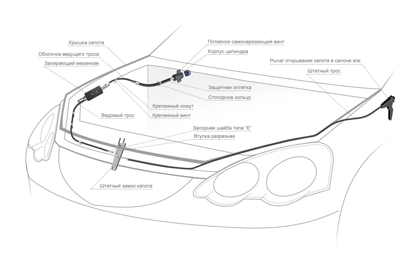 HL "в противоход" устанавливается в противоход штатного замка капота.